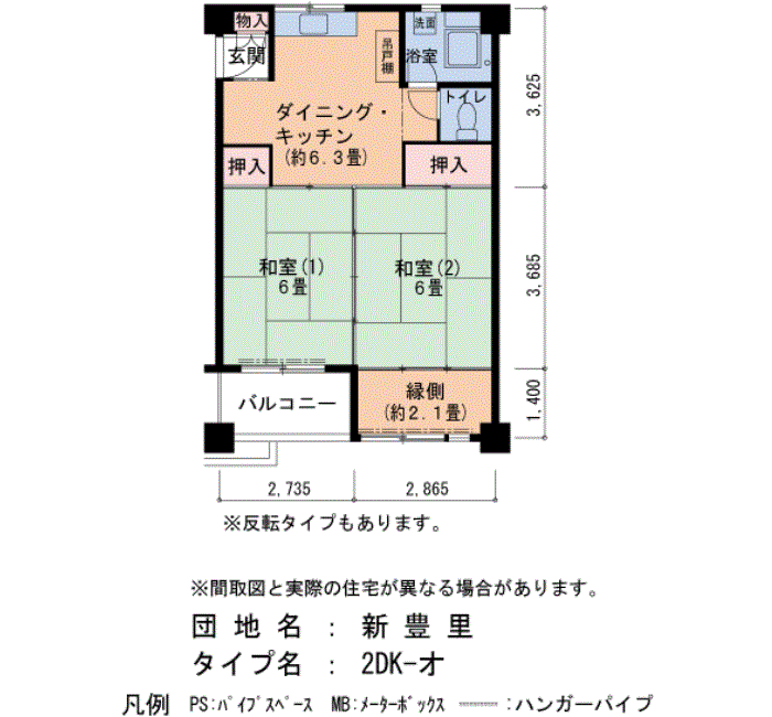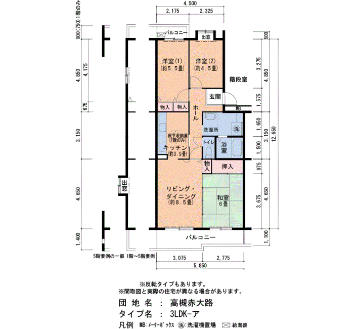 2LDK / 65㎡ / 5階